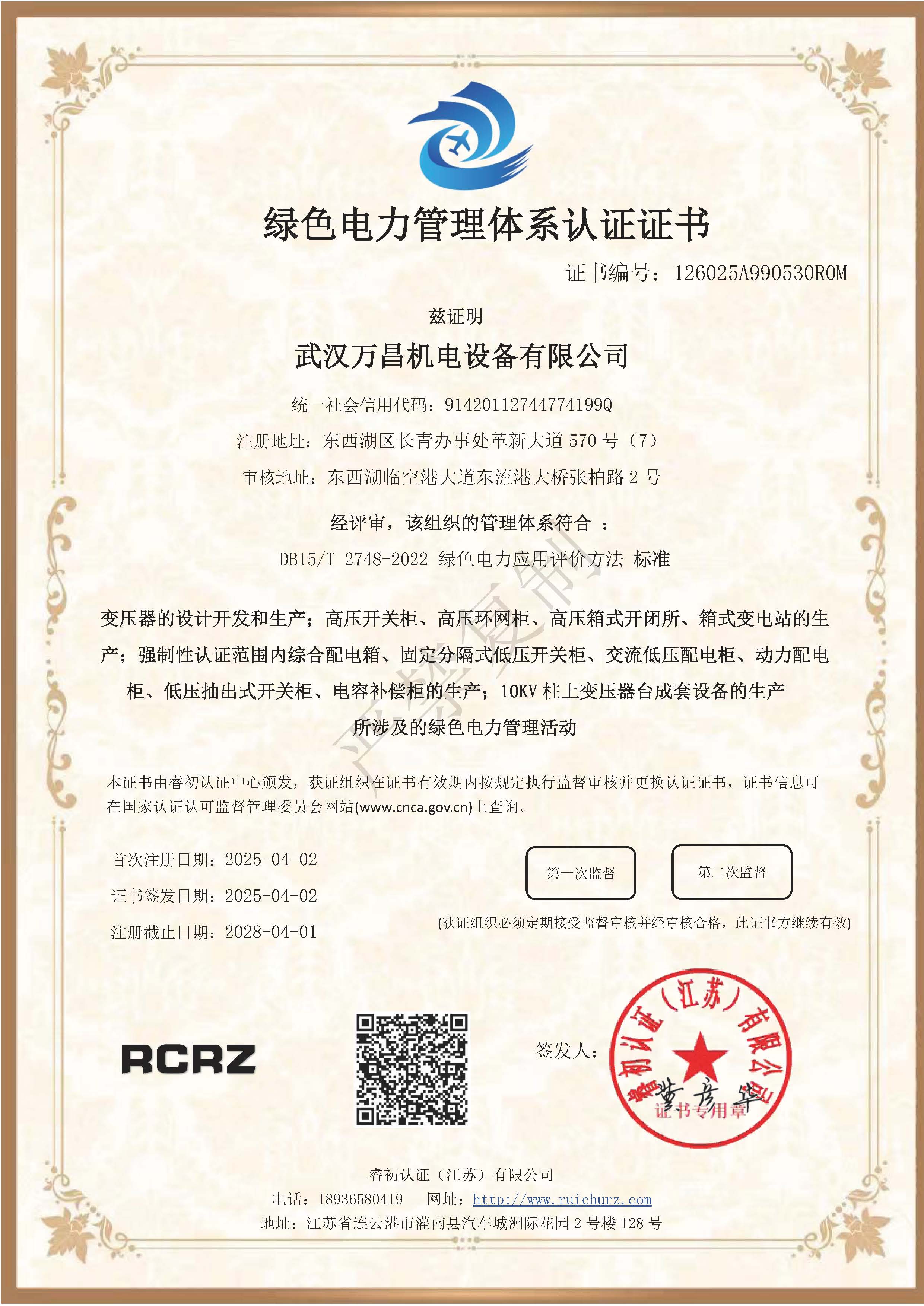 綠色電力管理體系認證證書